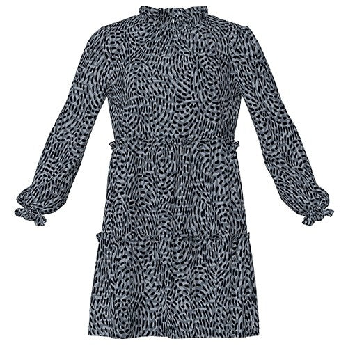 The Annabelle is a ruffle tiered dress with shirring at the shoulder, a ruffled neck with elastic casing, and a back keyhole with neckline button closure.