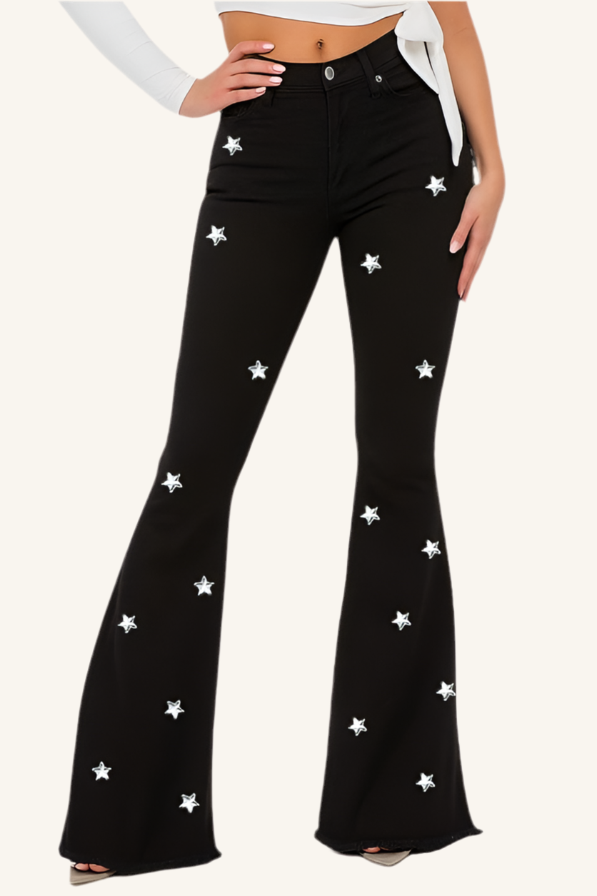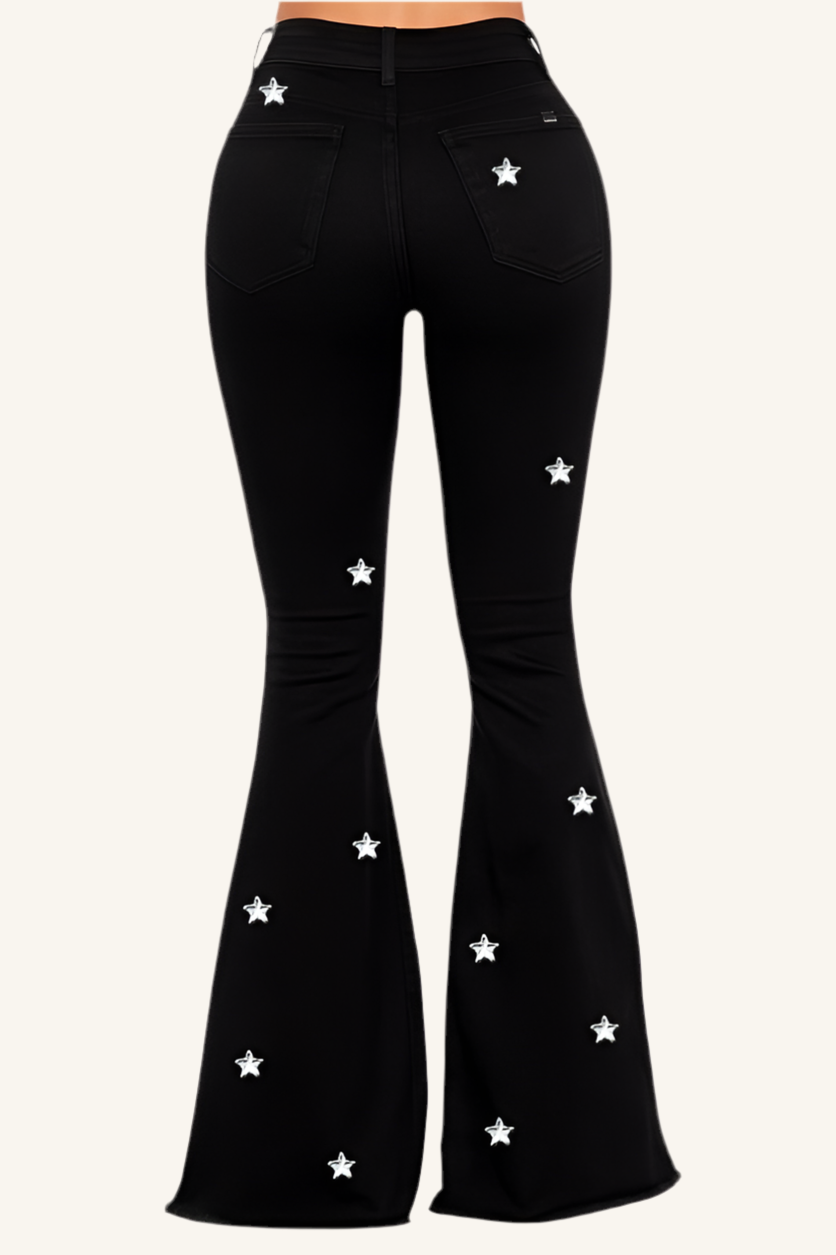 Black Bell Bottom with Diamond Star Embellishments