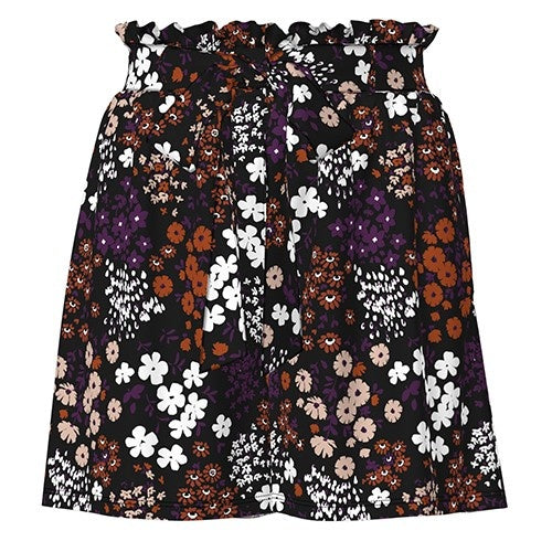 Ella Paper Bag Shorts - Black Orange Purple Floral