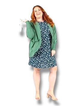The Kennedy cardigan has long batwing sleeves, a wide cuff, raw edge detail, and mixed media with contrast reverse terry panels.