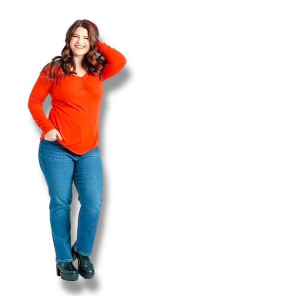 Fall in love with the Mia Sweetheart Long Sleeve Top! The shirred sweetheart neckline and sleeves offer warmth and charm. She is a perfect match of elegance and casual charm!