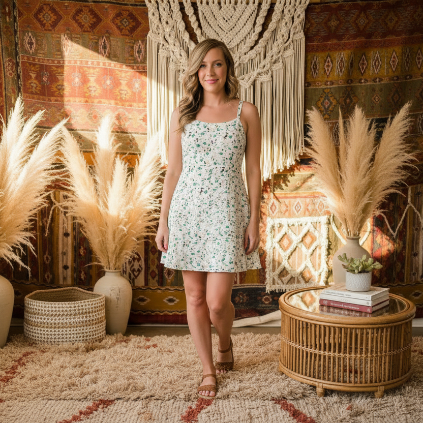 Introducing our Navy Cross Back Dress – the epitome of casual chic! Embrace the carefree spirit with this essential addition to your wardrobe. Crafted from a breathable and comfortable fabric, this dress ensures you stay cool and confident all day long. Its bra-friendly shoulder straps and removable cup inserts provide extra support, while the side seam pockets offer convenience without sacrificing style. Turn heads with the flirtatious side slit and show off the unique cross-back detail, featuring an elastic peek-a-boo design. Effortless elegance has never been this playful!