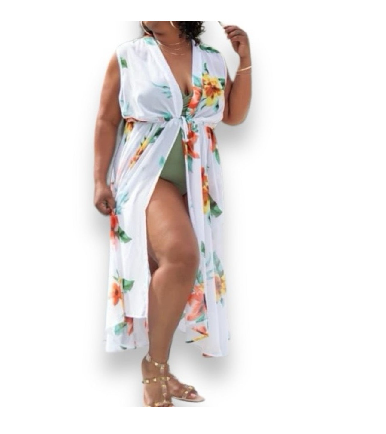 This sleeveless chiffon overlay features an elastic waist seam with adjustable drawcords and pockets to keep your essentials close. She’s designed with an A-line silhouette and a high low hemline.