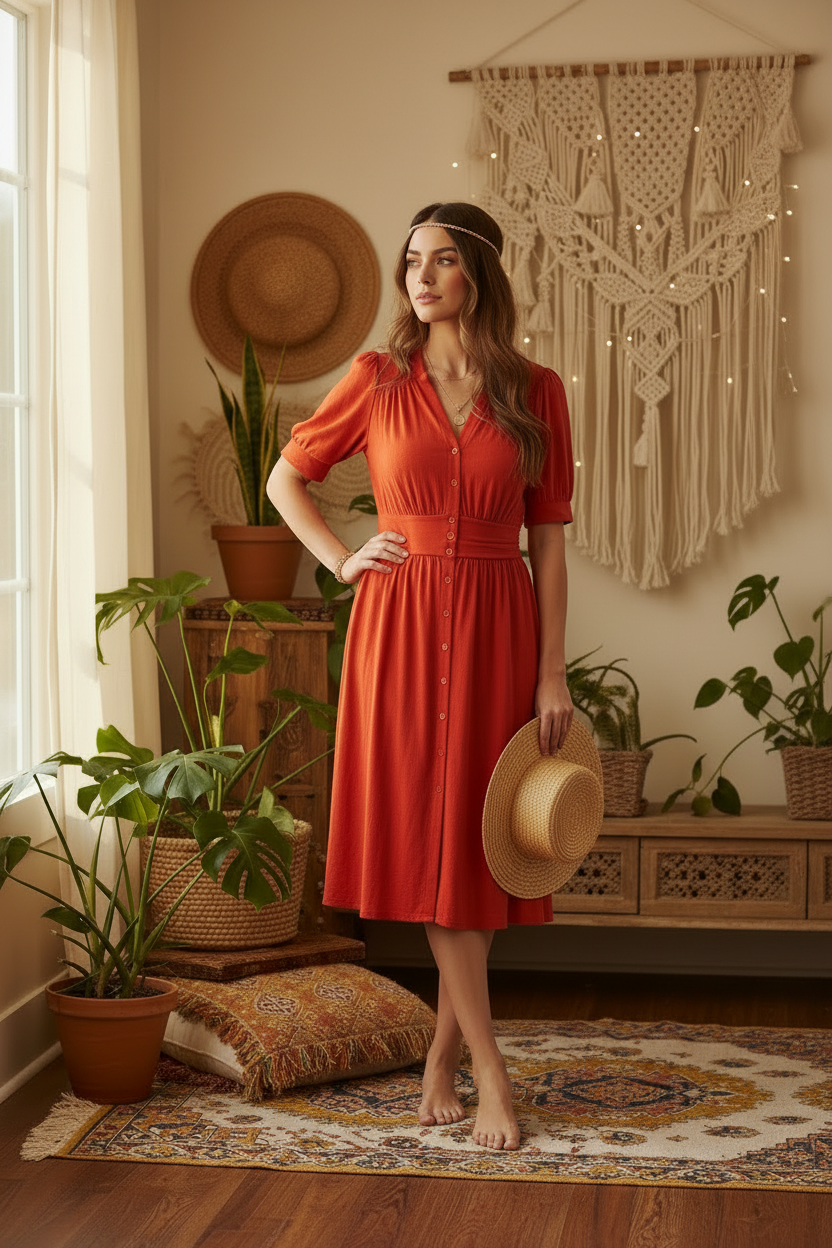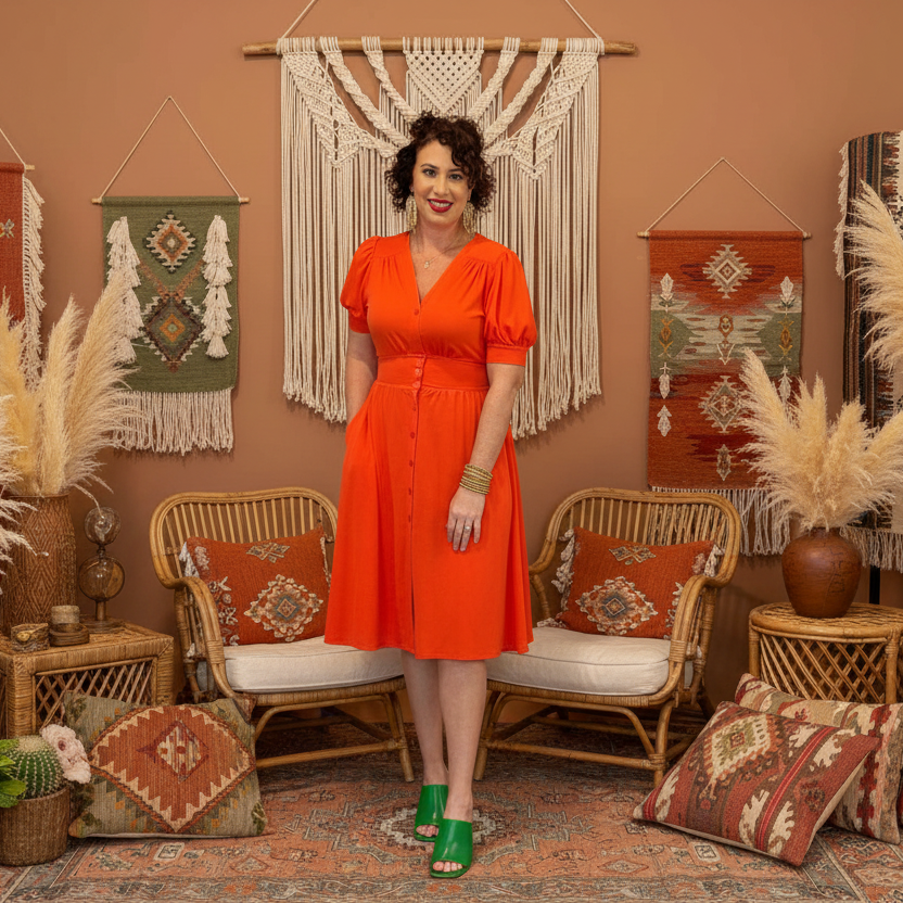 Introducing the oh-so-cute Skyler Midi Button Front Dress! Crafted from soft and airy Gauze Knit material, this dress is perfect for any fashion-loving gal. With playful puff sleeves, a twirl-worthy midi length, elegant button-front detailing, and side seam pockets, the Skyler dress will turn heads wherever you go. The front shoulder and back yoke are designed with darling shirring, adding an extra touch of whimsy, while the non-functional buttons on the waistband and bottom placket are simply too cute for words! The elastic waistband at the back ensures a comfortable and flattering fit, making this dress perfect for all-day wear. Trust us, once you slip into this dress, you won't want to take it off - it's simply too cute to resist!